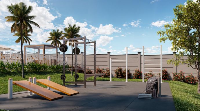 Lazer Completo: Piscina, Espaço gourmet, Salão de festa, Quadra esportiva, Playground, Espaço fitness, Pet place, Espaço de convivência, Bicicletário, Redário, Área de jogos ao ar livre, Sauna, Mercadinho (preparação), Praça do luau, Espaço piquenique, Horta.