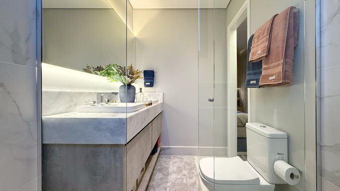 📐 85,28 m² – 2 suítes sendo 1 Closet, Sala 2 Ambientes, Lavabo, Cozinha, laje técnica para Ar-Condicionado.