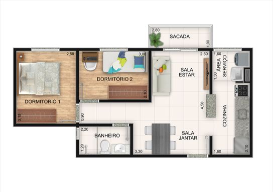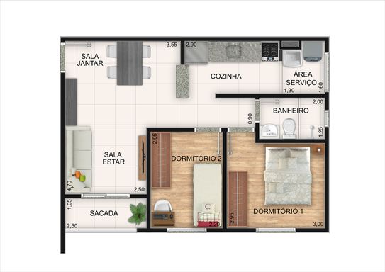 São Apartamentos com Plantas Modernas de 48 e 40 metros , com Varanda , área de Serviço , Infra para Ar-Condicionado.
