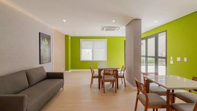 Fachada moderna, apartamentos com integração de seus ambientes, área comum projetada para atender requisitos de segurança, tecnologia e bem-estar. Tudo isso com sustentabilidade do local e dos produtos/equipamentos aplicados.
