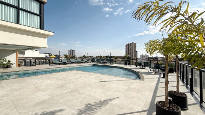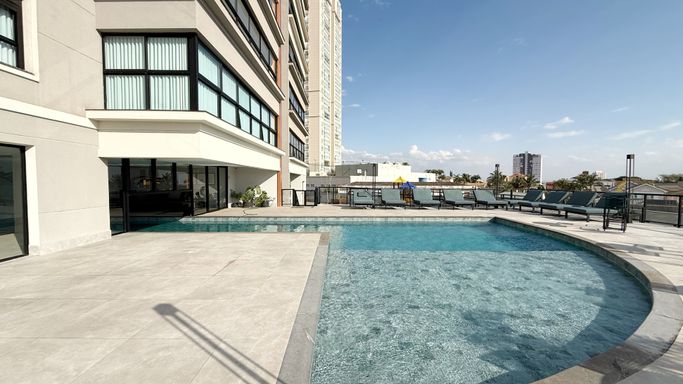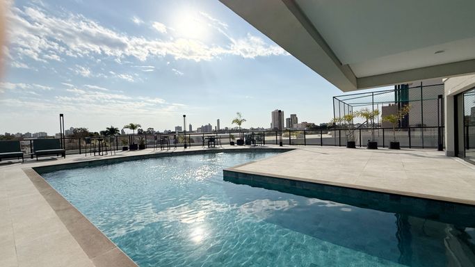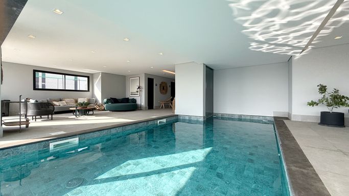 DIFERENCIAIS DO EMPREENDIMENTO - Sistema de monitoramento de CFTV, Piscina Climatizada Semicoberta, Gerador de energia para uso de elevadores e iluminação das áreas comuns, Ambientes das áreas comuns equipados e decorados, Pressurizador de água para as coberturas.