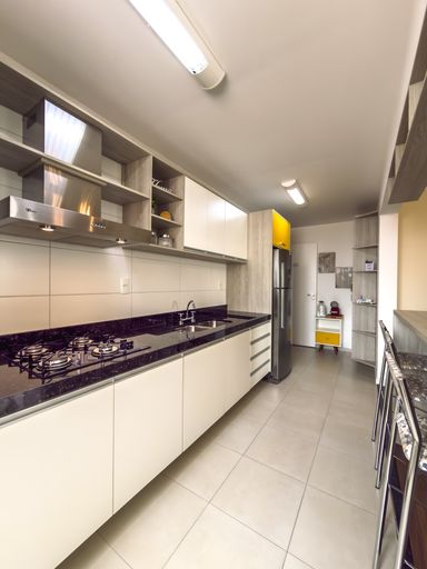 ✔ Cozinha planejada equipada com cooktop, coifa, forno e micro-ondas