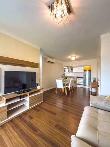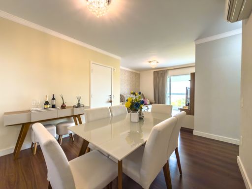 ✔ Sala de estar e jantar integradas com lustres elegantes