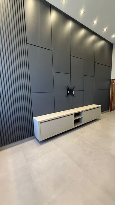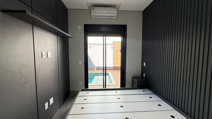✔ Esquadrias em alumínio preto nos quartos, automatizadas com controle remoto
