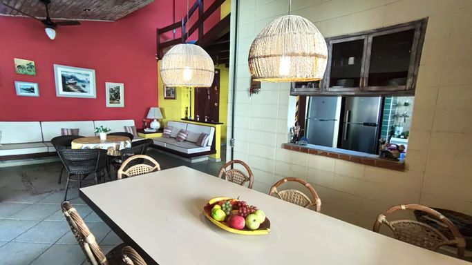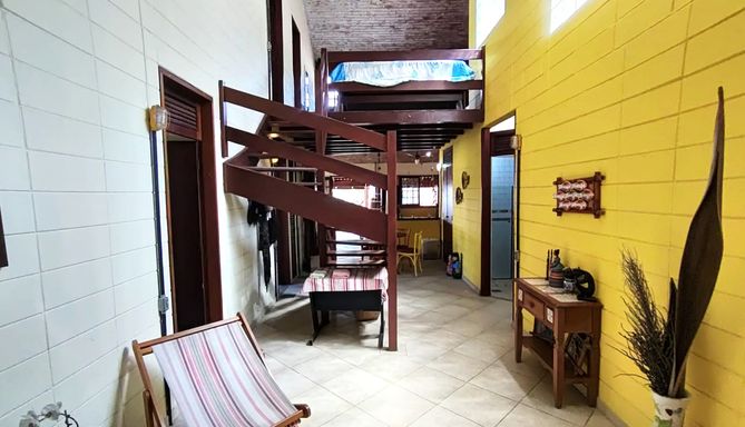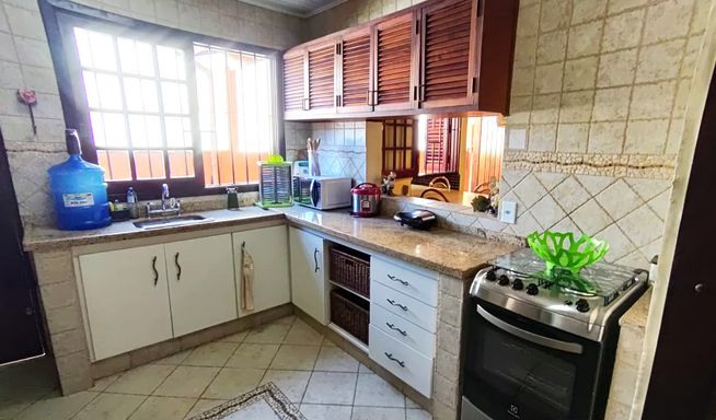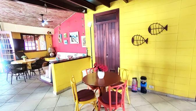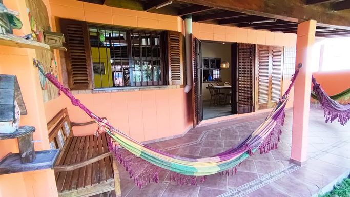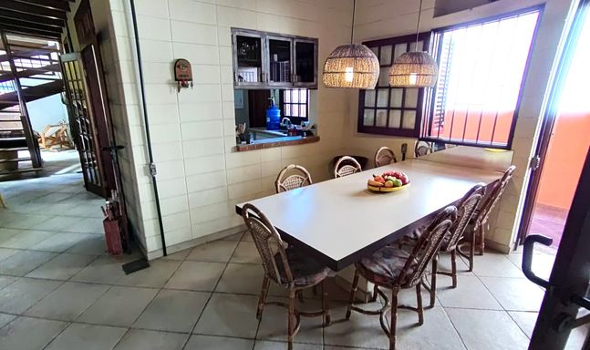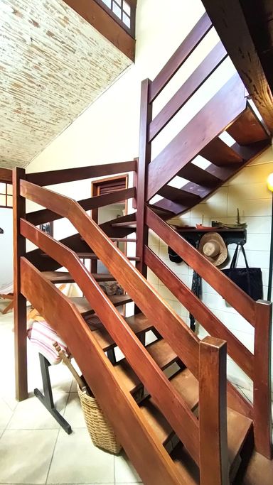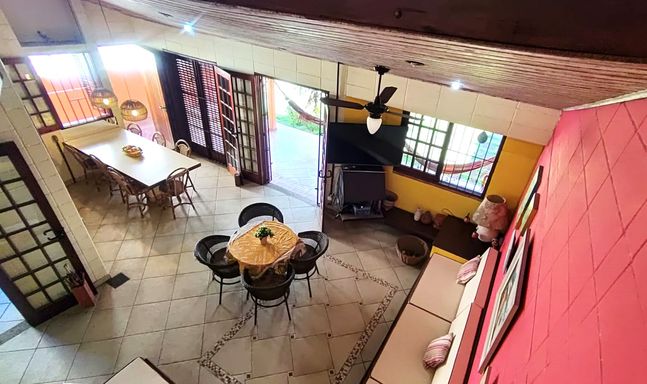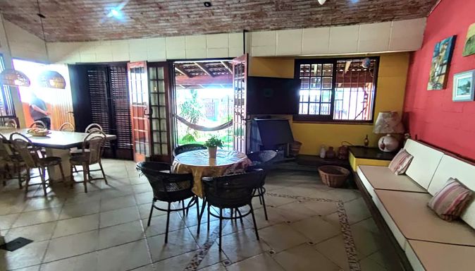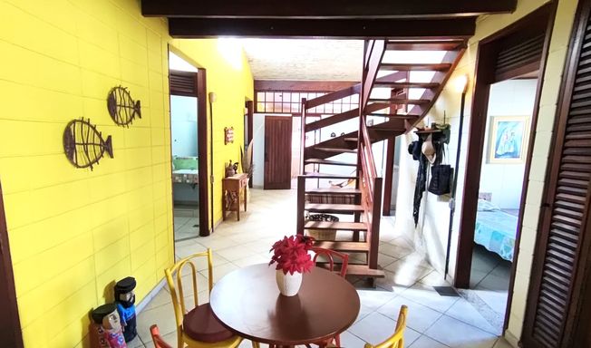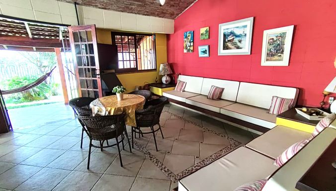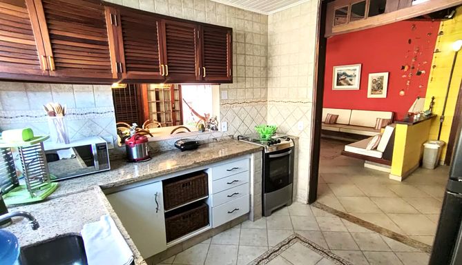 Esta charmosa casa conta com 4 dormitórios, sendo 1 suíte master com closet, ampla sala com dois ambientes, sala de jantar, cozinha estilo americana, mezanino com sala de estar, área de serviço e 2 banheiros . Toda mobiliada e decorada. A área externa da casa é toda avarandada, com amplo gramado, área verde e churrasqueira.
