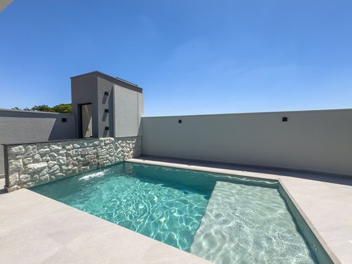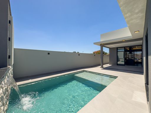 Piscina com cascata, hidro e preparação para aquecimento