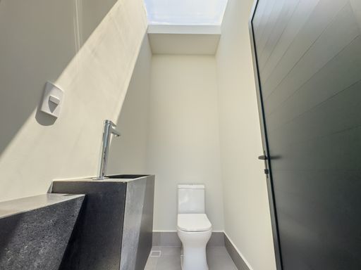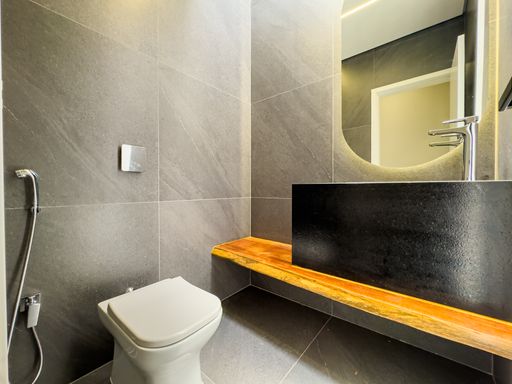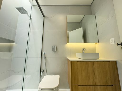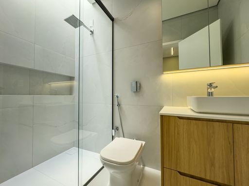 Banheiro de apoio na área da piscina