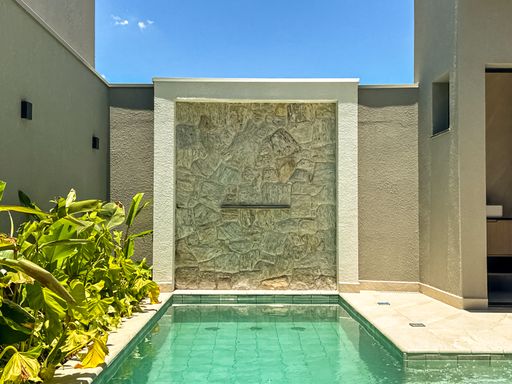 Piscina com cascata, hidromassagem e preparação para aquecimento