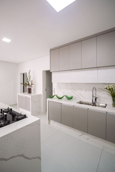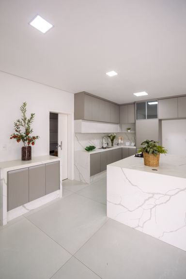 ✔ Cozinha ampla com ilha em porcelanato Calacata