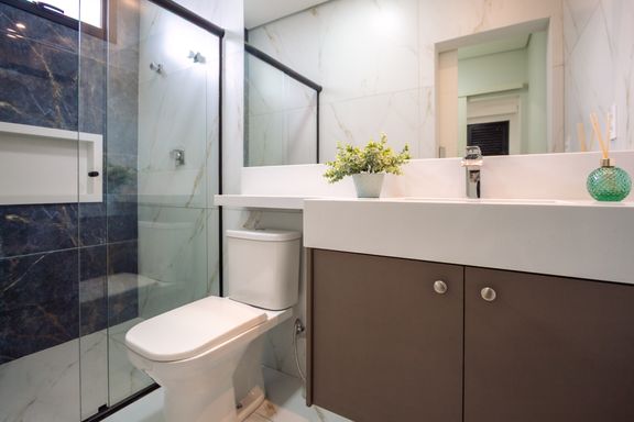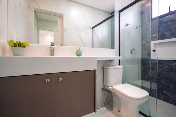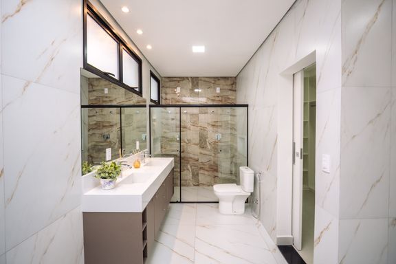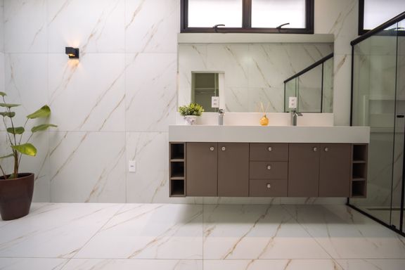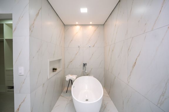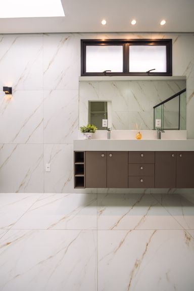 🔹 Pias esculpidas em porcelanato nos banheiros