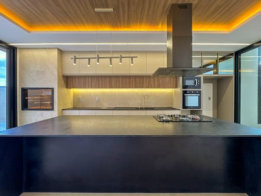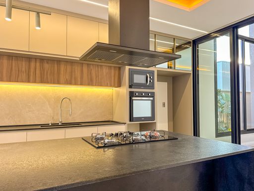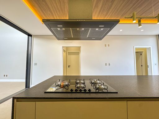 ✅ Cozinha equipada com cooktop, forno, micro-ondas e coifa Tramontina