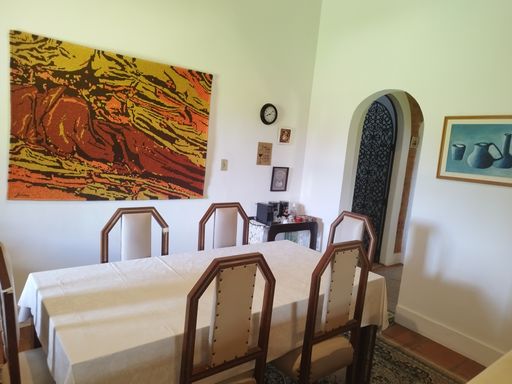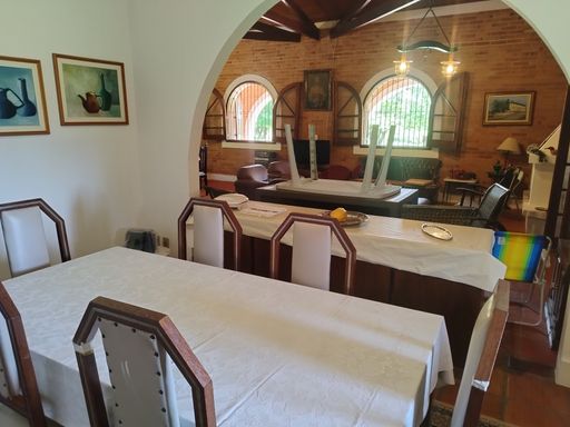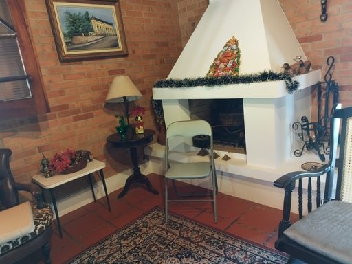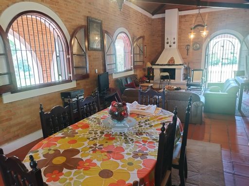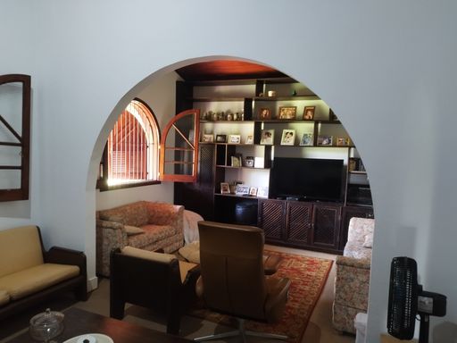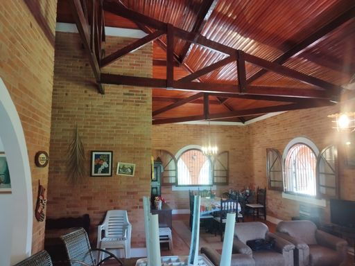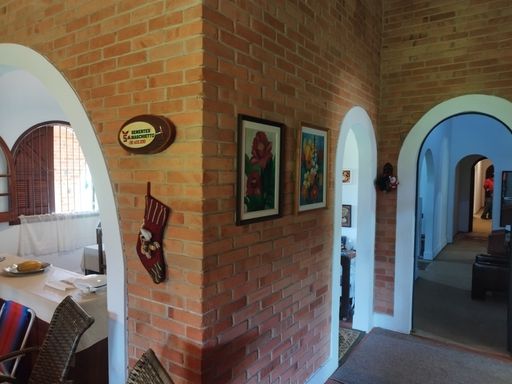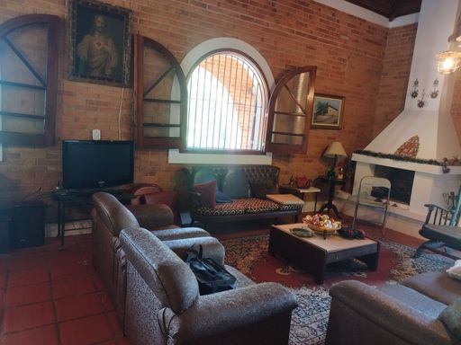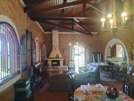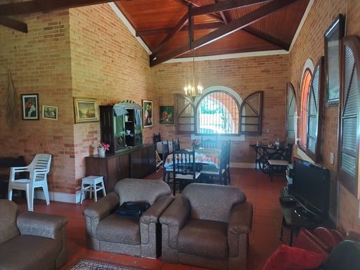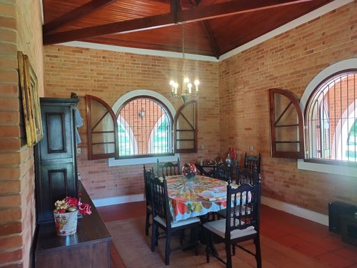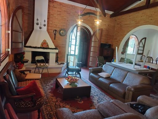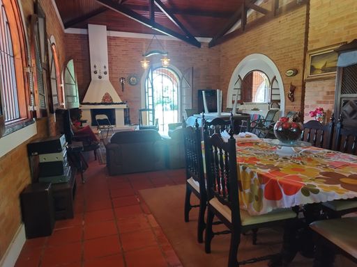 Sala ampla com 3 ambientes (estar com lareira + 2 salas de jantar)