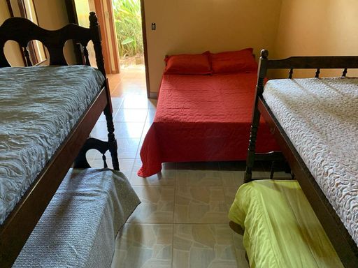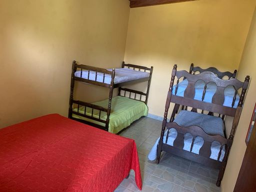 5 chalés, sendo 2 chalés com 2 quartos e 3 chalés com 1quarto, todos chalés com banheiro privativo e camas.