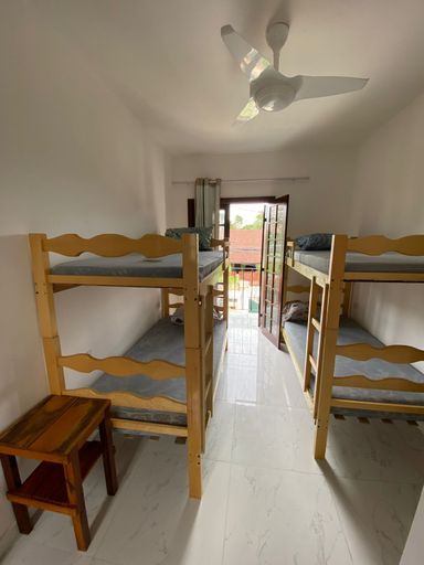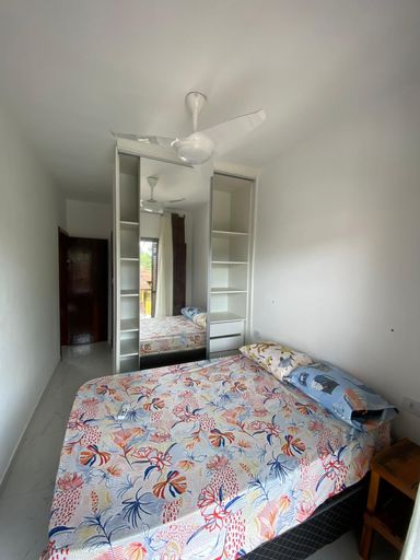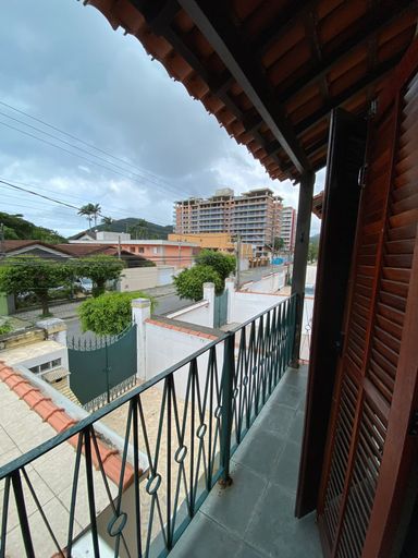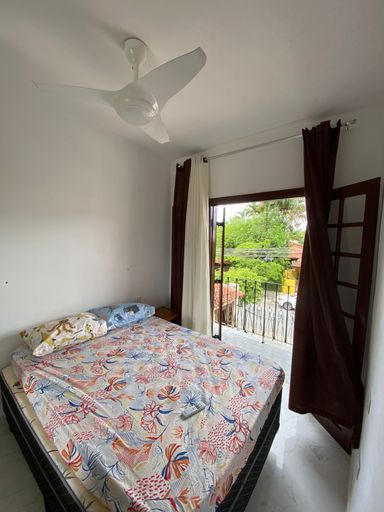 Na parte de cima são 2 Suítes com Varanda, com camas e armários.